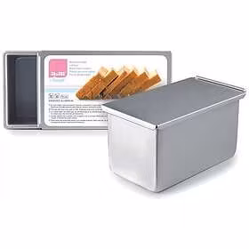 Form med lock, som rymmer ca 5,3 L och uppemot 1,8 kg deg. Tillverkad av rostfri aluminium, utan skarvar. Ugnssäker, kan inte diskas i maskin.