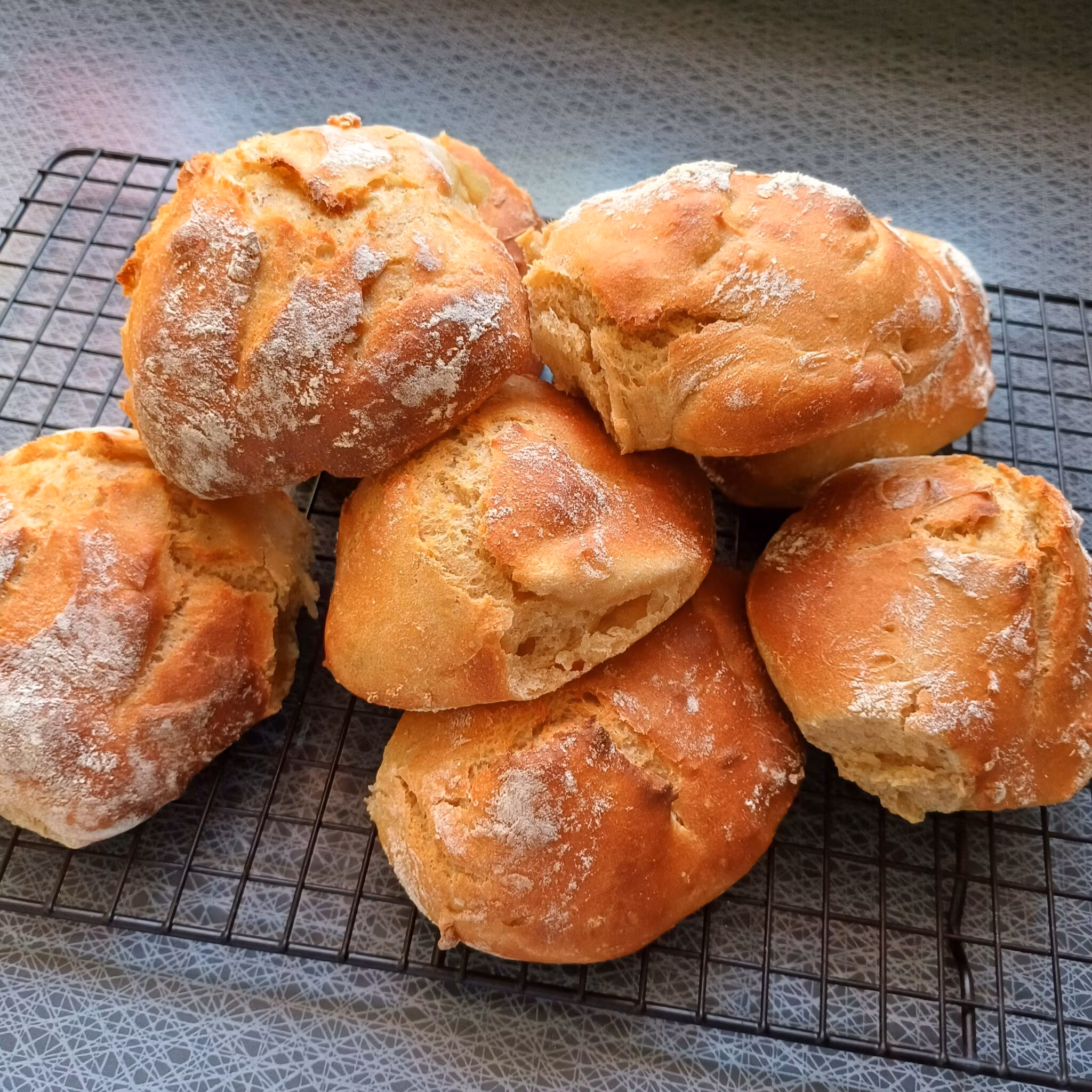 Ljusa bullar bakade av hälften spelt, och hälften vetemjöl.