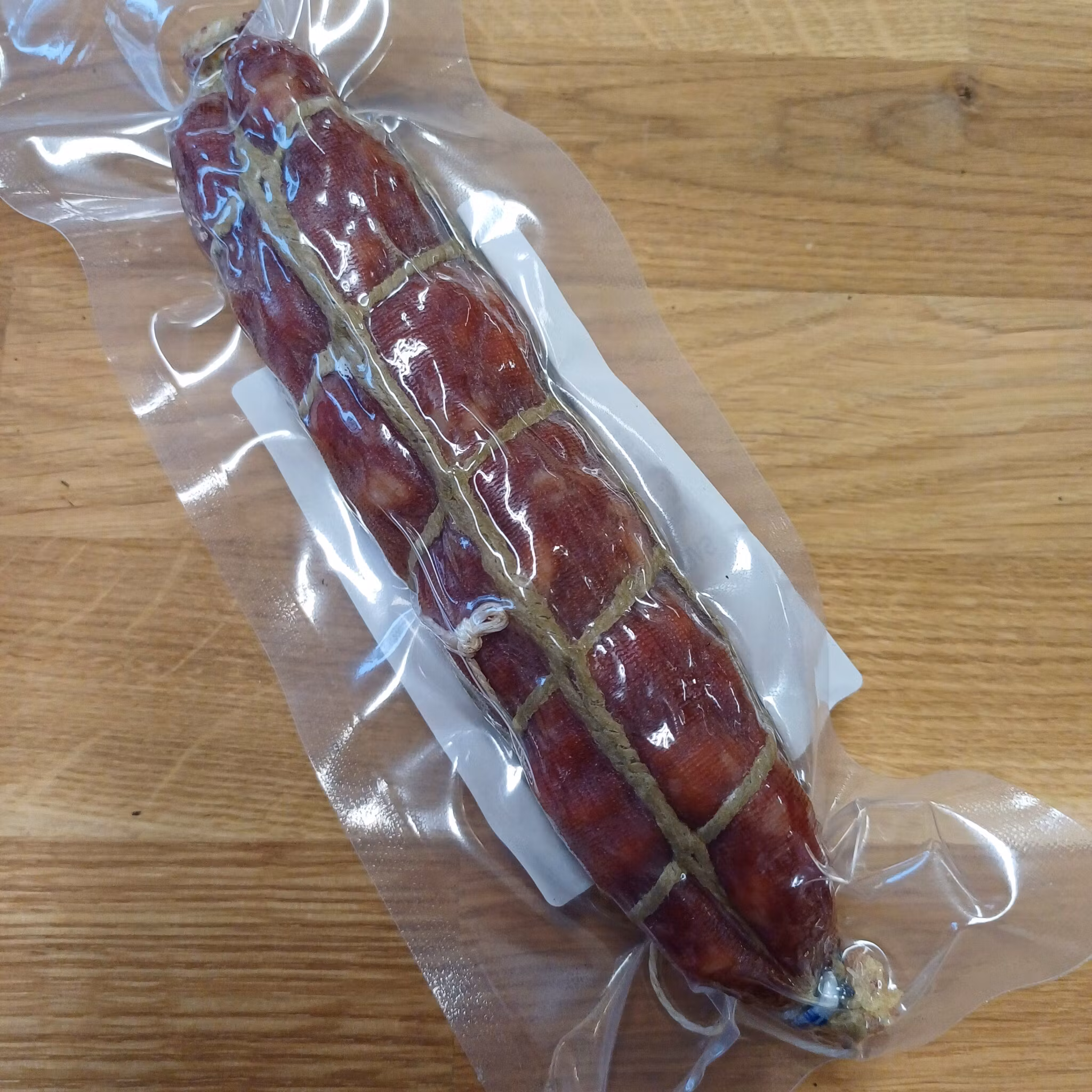 En lufttorkad salami med grövre struktur. Mild men ändå härlig smak. Gjort på Fläskkött och helt utan någon tillsatt E-nummer.