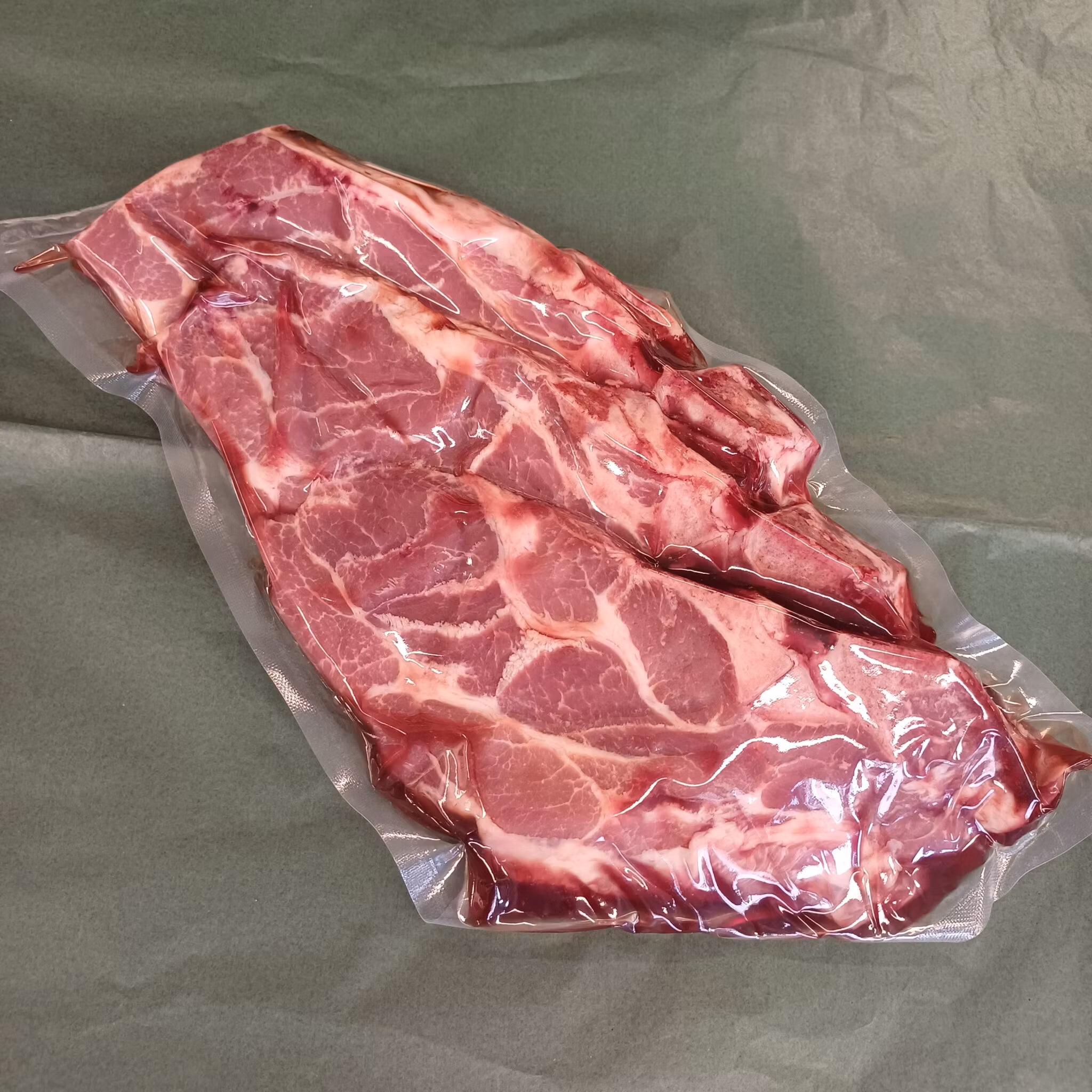 Här får du fläskkött från våra egna utegrisar. De är födda i Harphult utanför Hörby, och sen uppväxta på vår gård utanför Tollarp. Hos oss har de fått böka i jorden och hjälpt oss förbereda våra odlingsytor och blivande jordgubbsland. De är bland ras av Linderödssvin, Ungersk ullgris och Hampshire.