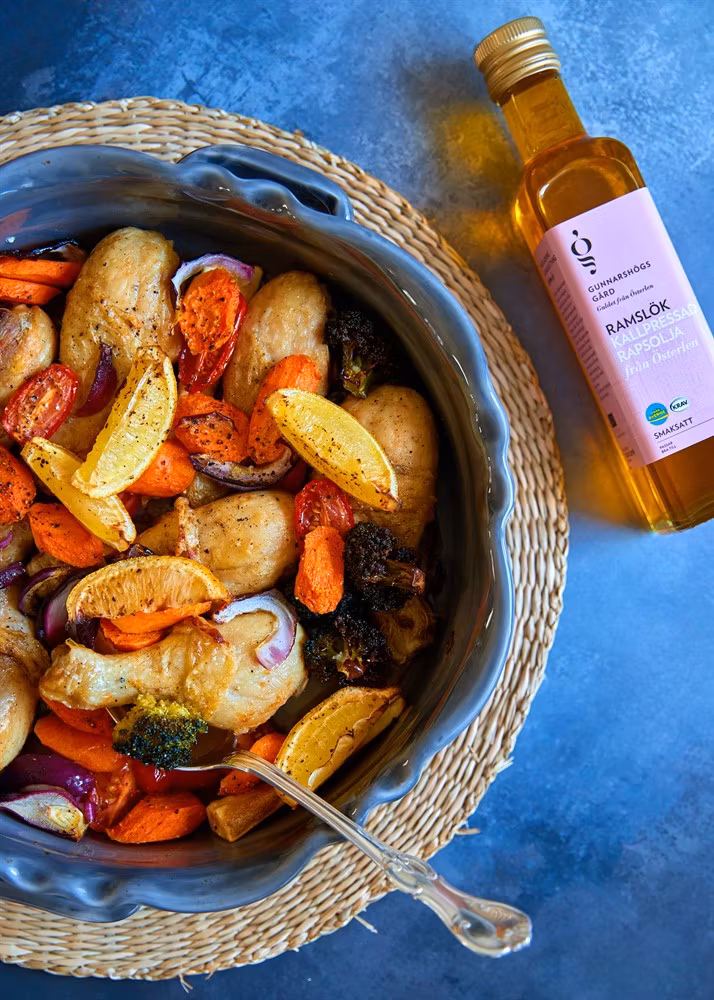 Svensk ramslök ger vår ekologiska ramslöksolja dess unika smak. Bladen får dra i kallpressad rapsolja tills den tar upp smaken av skogens vitlök. Oljan lyfter smaken på nystekt fågel och fisk. Oljan passar även bra i hummus och pesto istället för färsk vitlök. Våra smaksatta rapsoljor passar lika bra till varm som kall matlagning.