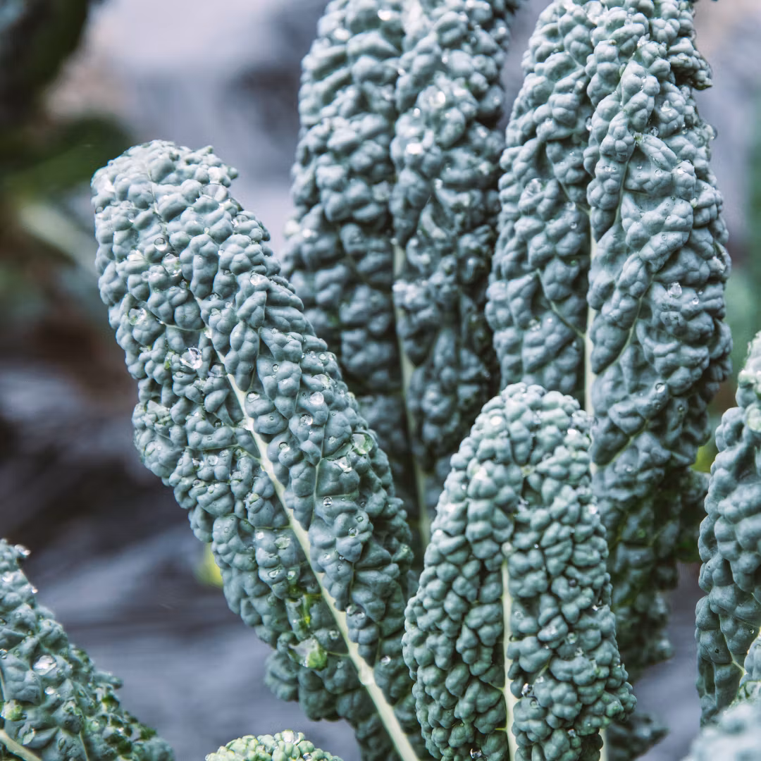 Palmkålen 'Nero di Toscana' som är en lättodlad kultursort från 1800-talet ger kraftiga, vaxartade och mörkt blågröna blad, den blå färgen blir starkare när det blir kallare ute. Sorten är även känd som dinosauriekål och svartkål. Plantan blir väldigt vacker och även efter att du börjat skörda blad så fortsätter den att växa på höjden och skjuta ut nya blad, till slut liknar denna en palm - varav namnet.
