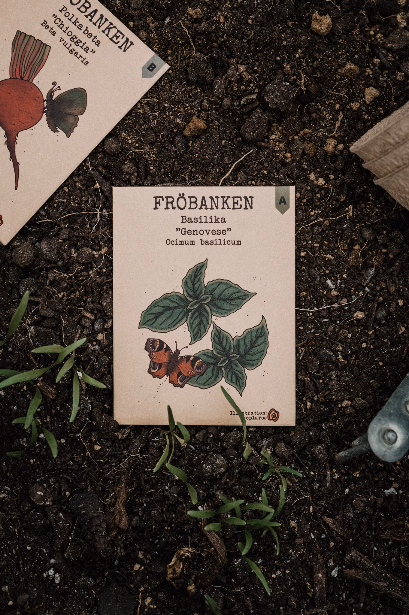 Unik fröpåse från Fröbanken med vackra illustrationer gjorda av Emma Jansson.